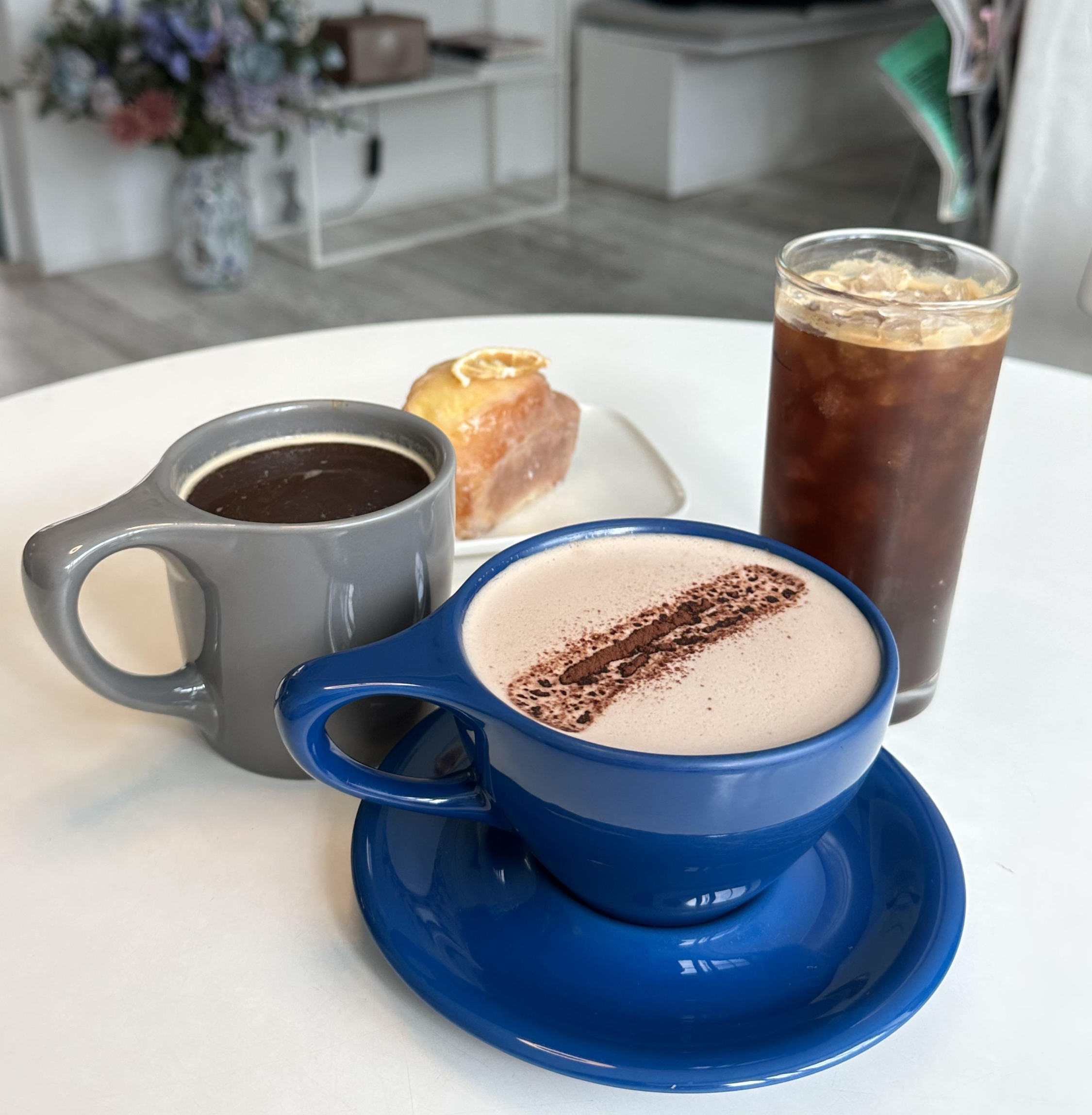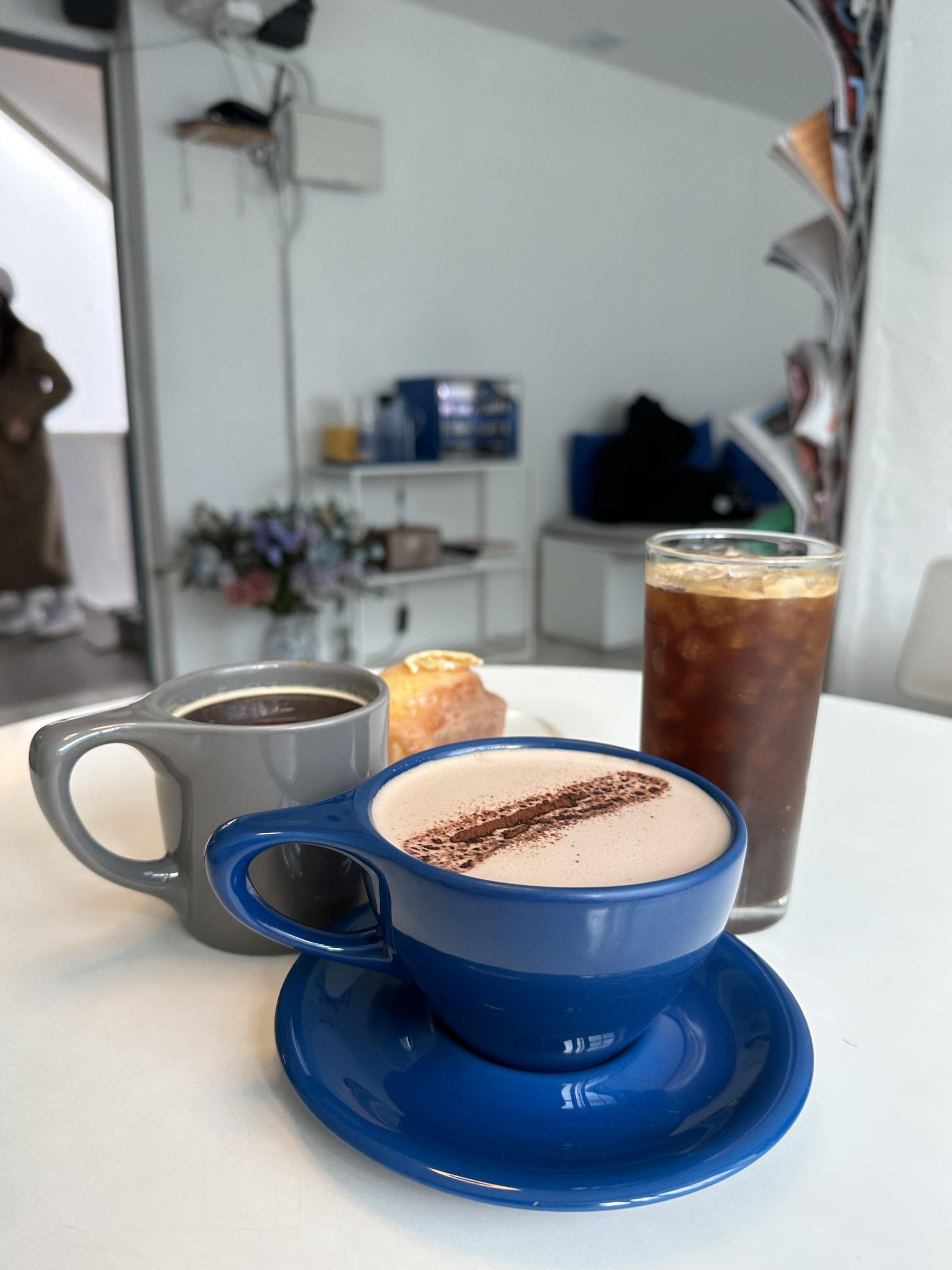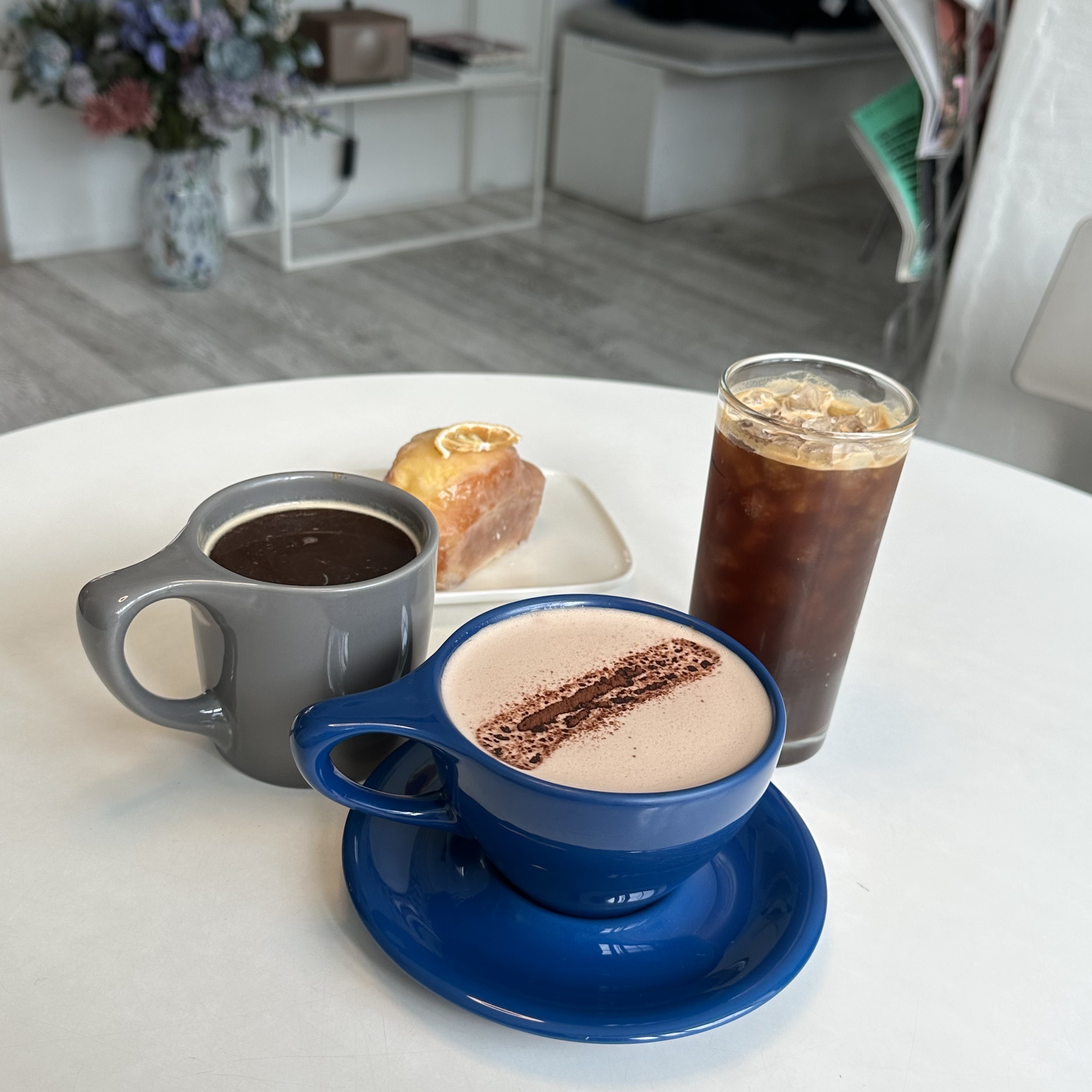 사진에서 볼 수 있는 커피 취향들. 저는 아이스, 엄마는 핫, 커피를 못마시는 동생은 핫초코를 주문했어요. 핫초코는 맛이 진한 초코파추더를 사용하시는지 진한 초코맛을 느낄 수 있어서 좋았습니다 :) 꼭 커피가 아니더라도 핫초코를 주문해보시는 것도 추천드려요!