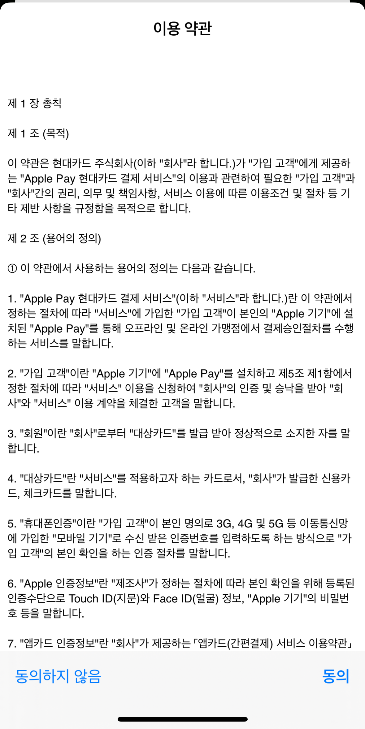 그리고 가지고 계신 현대카드와 애플페이가 연동 됩니다. 최대 1분정도 소요되는 것 같지만 저는 10초 정도 기다렸습니다.