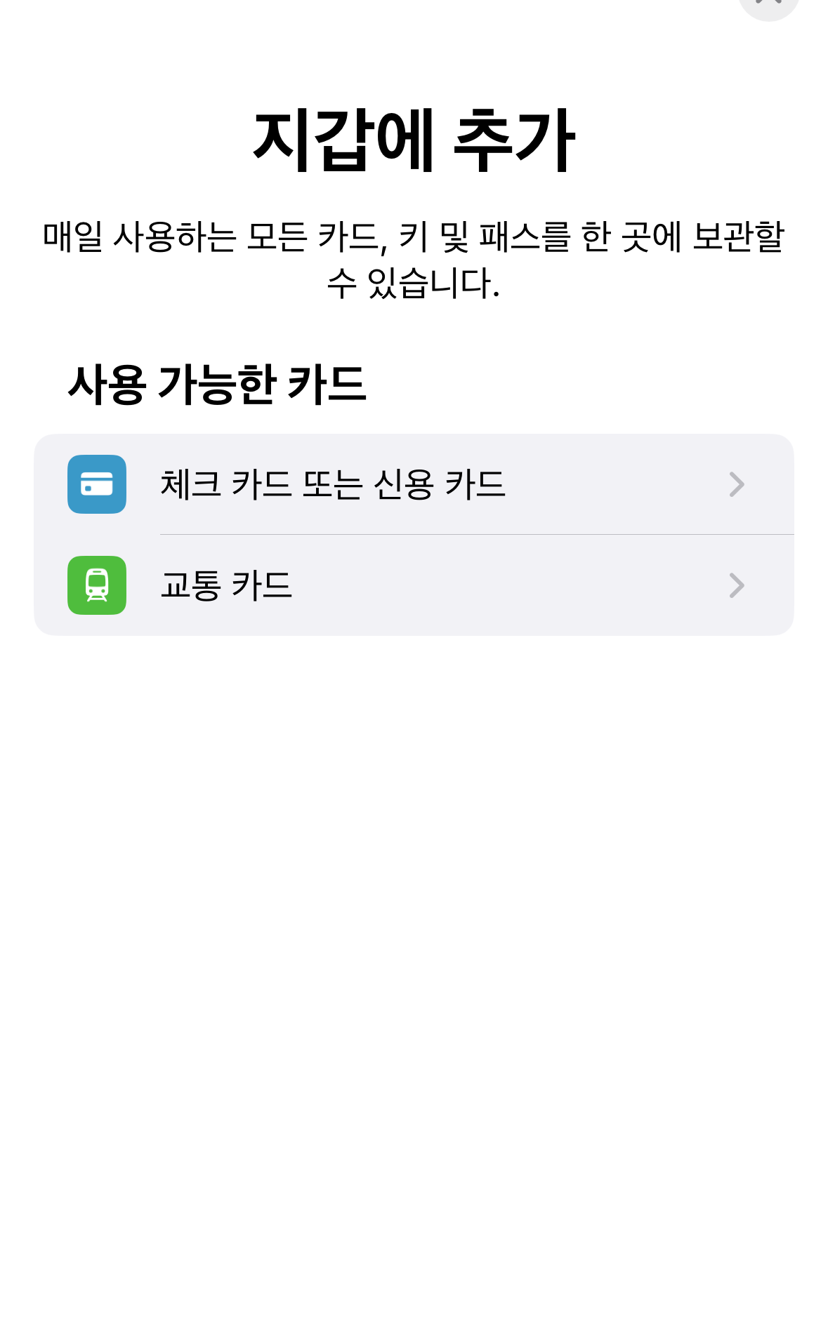 2) 지갑 및 Apple Pay 비활성화가 되어져 있는지 확인하기